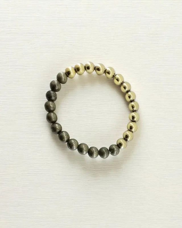 Elevate your energy, confidence, and manifestation power with this handcrafted Pyrite & Golden Pyrite bracelet—designed for leaders, dreamers, and doers. Crafted using genuine Pyrite and shimmering Golden Pyrite crystals, this empowering bracelet radiates earthy-gold tones with a luxurious metallic finish that commands attention and confidence.